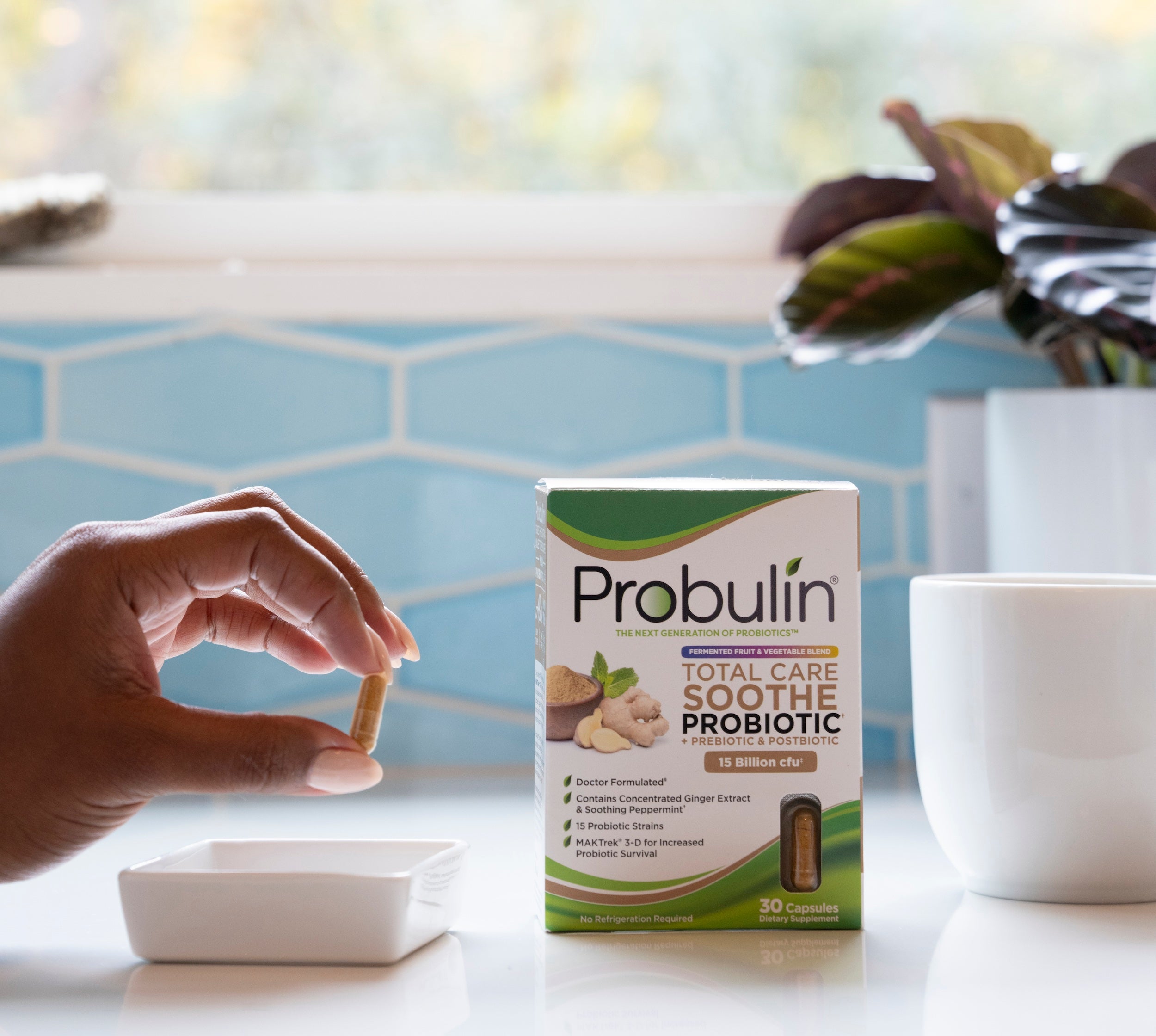 Probiotics + Ginger + Peppermint = The Ultimate Soothing Support. Total Care Soothe is a specially-formulated prebiotic + probiotic + postbiotic that offers superior digestive support.†