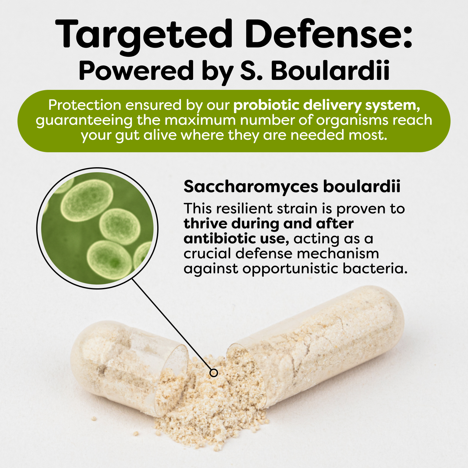 Features Saccharomyces boulardii and 16 supportive strains to help protect against harmful bacteria and restore microbial health.†
