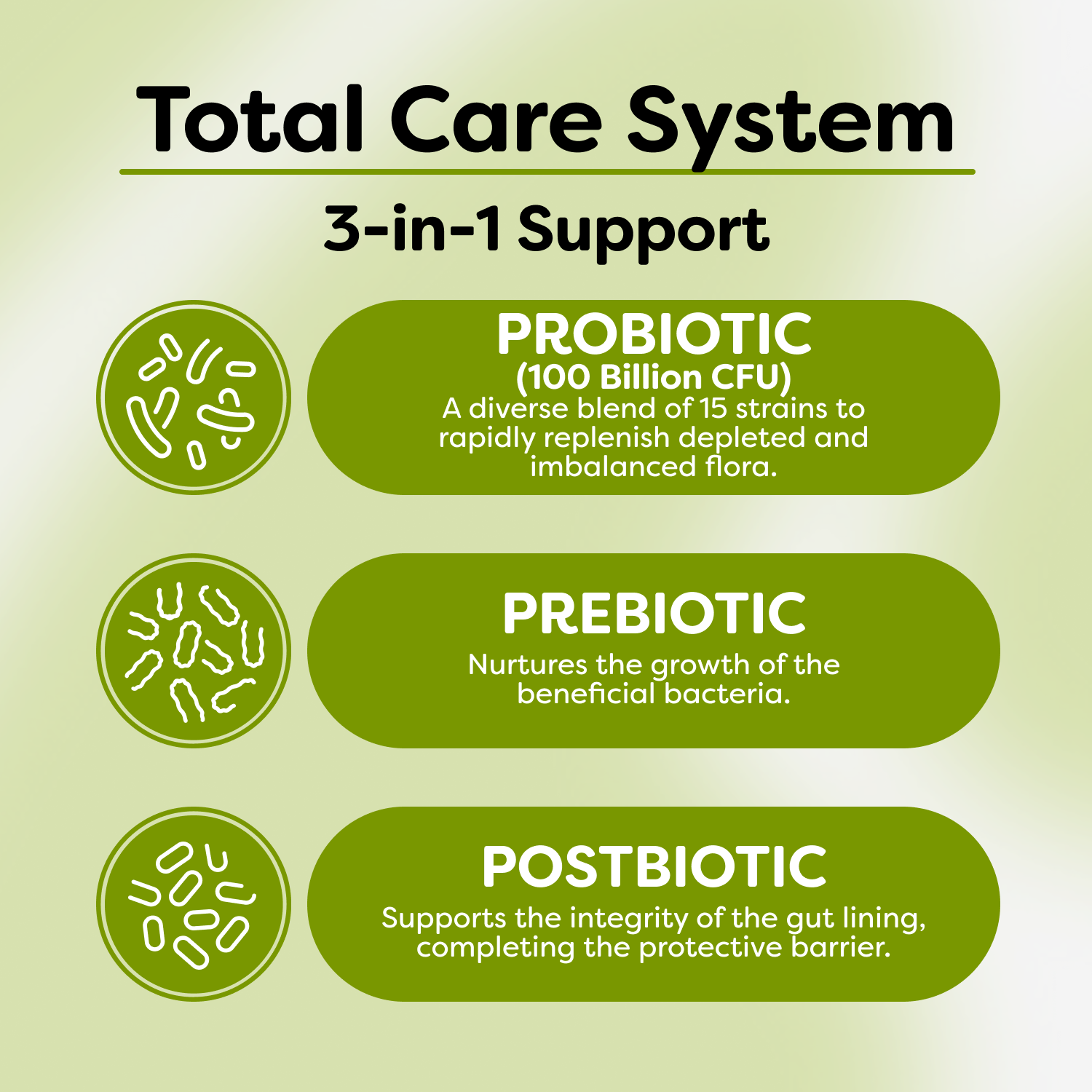 This formulais a high-potency, 100 Billion CFU "Total Care" system designed to help you bounce back quickly after antibiotic use or periods of severe digestive disruption. This doctor-formulated blend features the resilient probiotic yeast S. boulardii to shield your system from harmful bacteria and support natural detoxification.