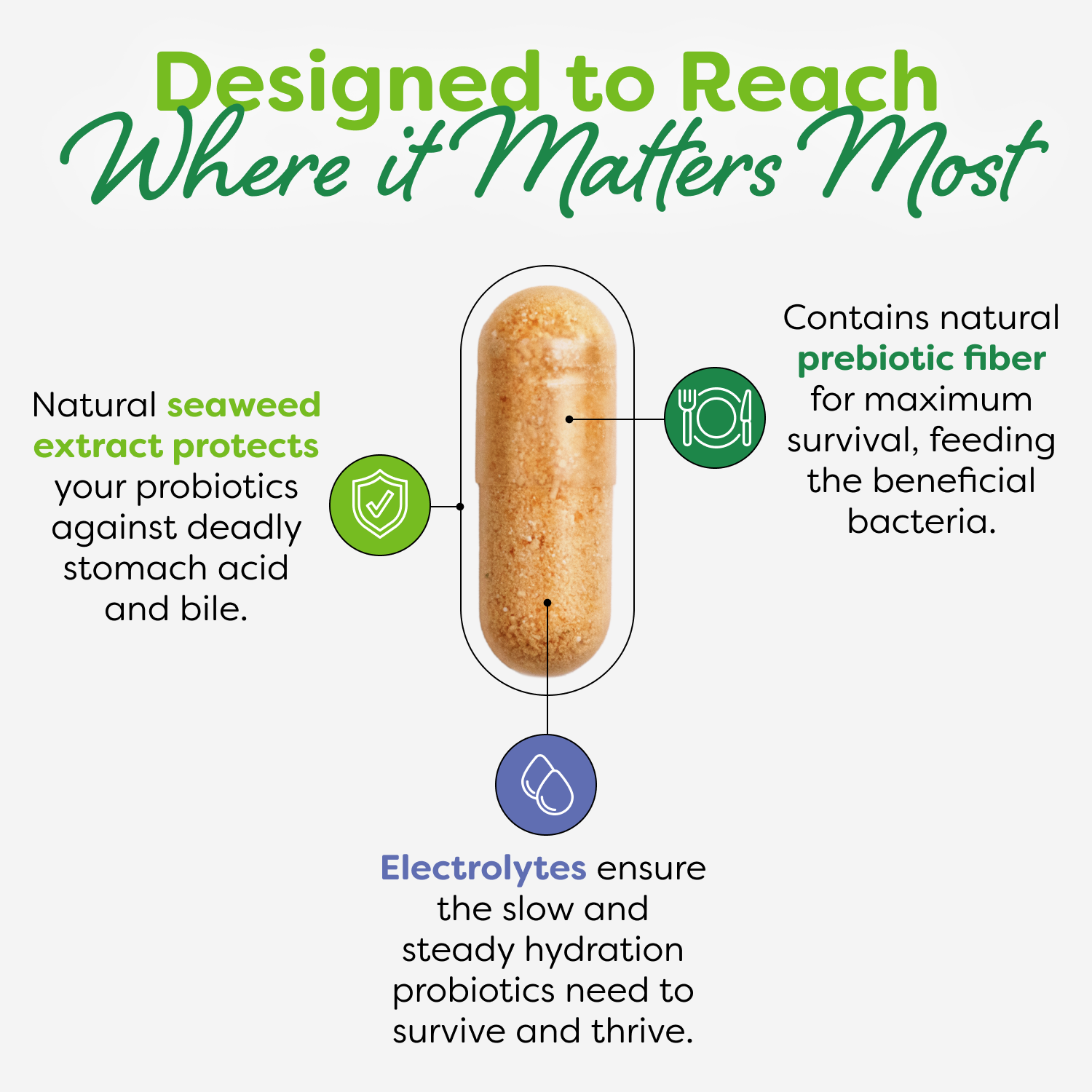 Our delivery system offers protection against stomach acid and bile, so your probiotics arrive alive and get right to work.